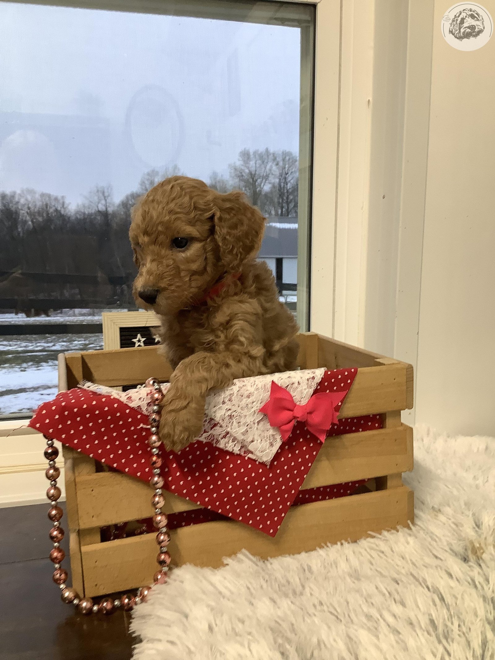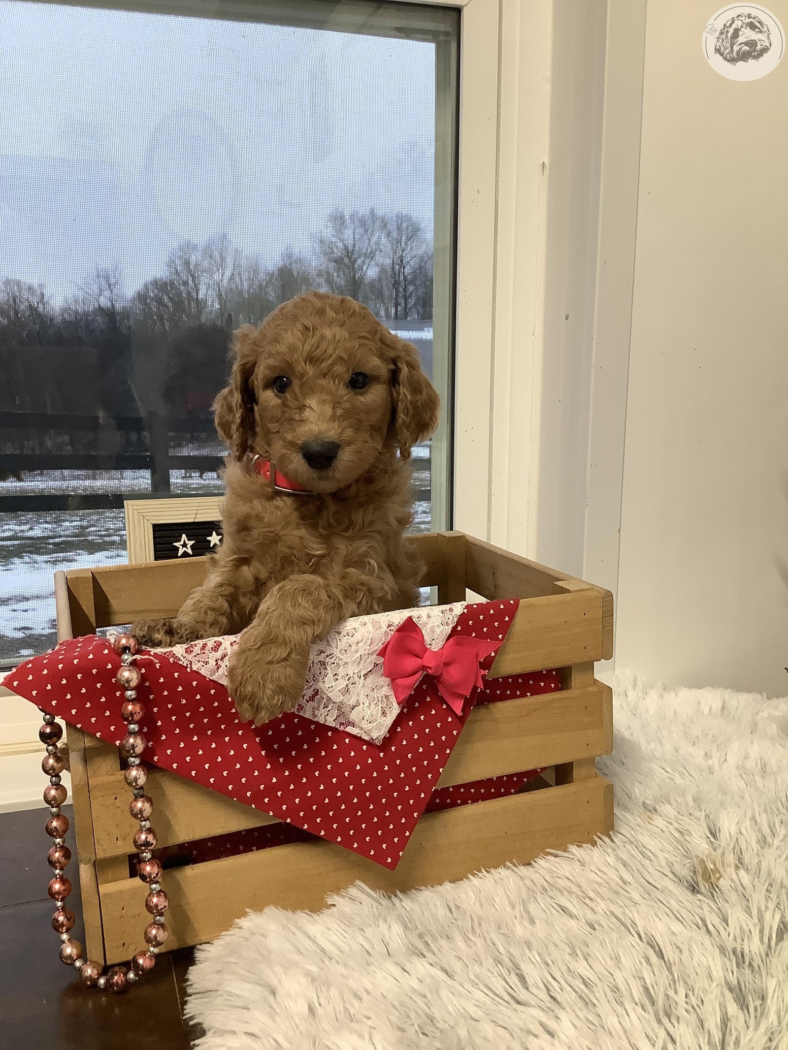 Come meet this cute and beautiful little puppy named Leah ! who is an affectionate, playful female puppy and loves everyone that she meets !! She is a red golden hair color F1bb Goldendoodle, She has a standard size momma ,named Kayla , And daddy is AKC Reg. Standard poodle named Bravo . Parents are on premises for you to meet , if desired , Leah is very playful ,and is well socialized, enjoys our attention, and is waiting to join your family ! She is up to date on shots and dewormed, and also microchipped… Leah will be vet. checked , at 7 weeks old .....And will be ready to join you on Feb. 10 th or later ....a deposit of $100.00 will hold her for you until pick up day , w/ Venmo or PayPal, if you can’t come right away , or ground shipping is available too, anywhere in the 48 states , for a (fair price )fee. To see a video or more pictures of our puppies ,text us your email address, and please feel free to contact Vera 330- 473-7151