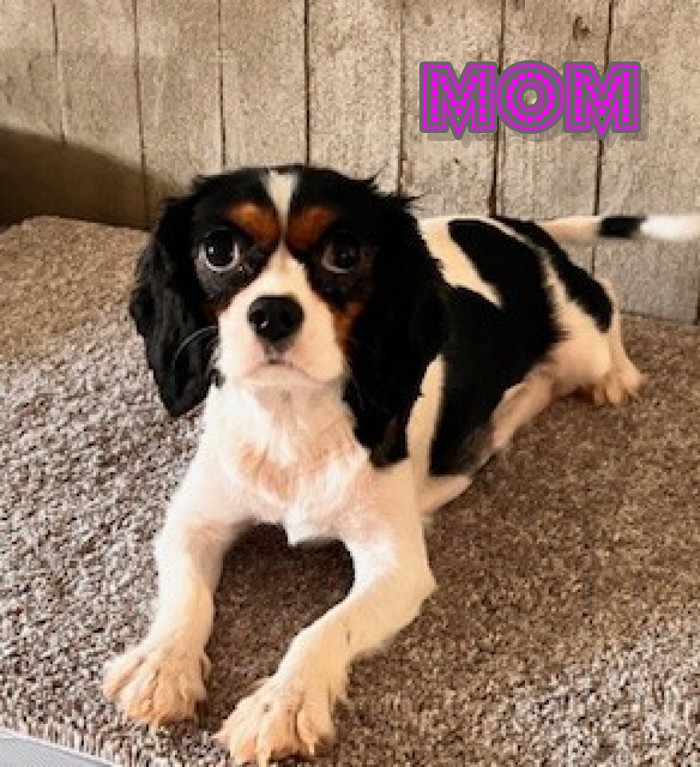 His mom is a Cavalier that weighs 15 pounds and his dad is a Mini Poodle that weighs 9 pounds.
